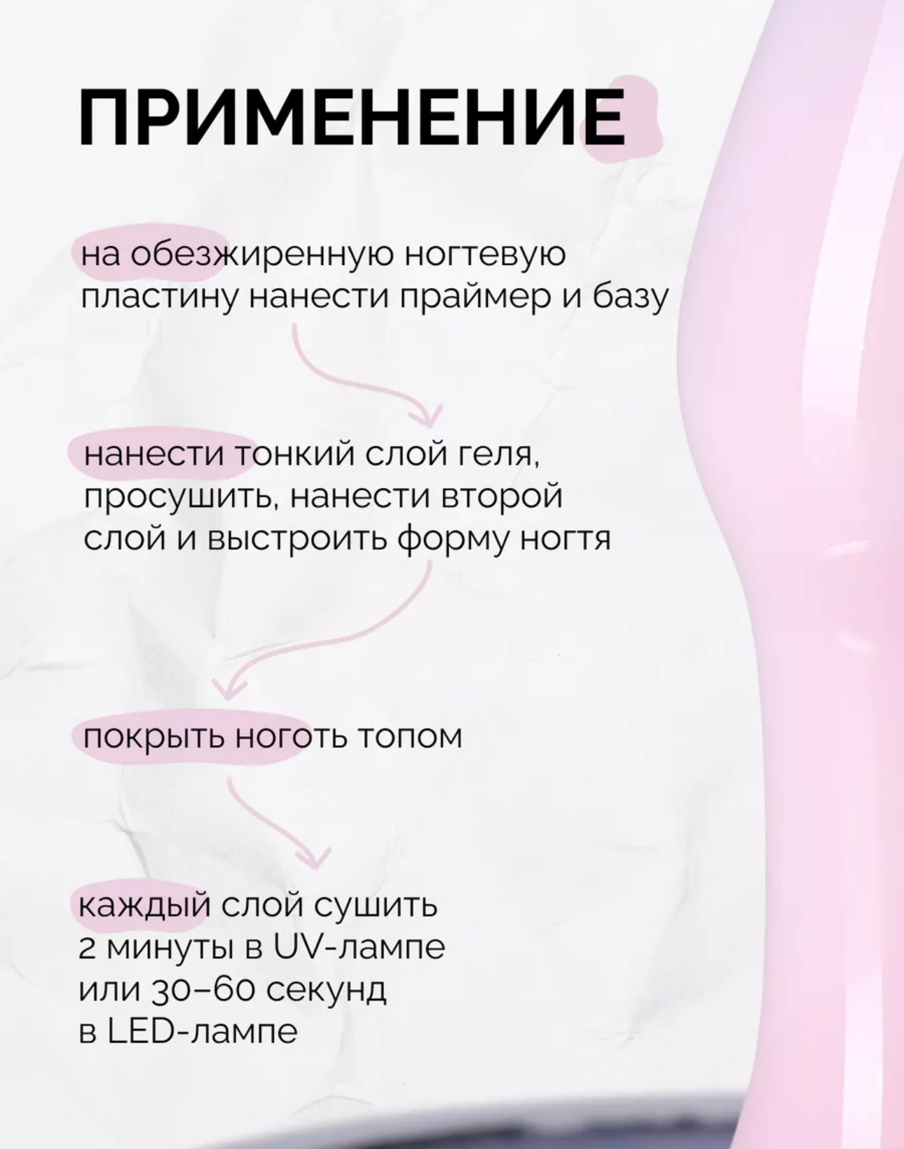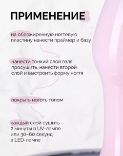 Гель для моделирования ногтей (15 гр), светло-розовый. Получите ногти, о которых всегда мечтали: гели для ногтей от Global Fashion, которые превзойдут ваши ожидания! Color Builder gel - это гель для наращивания и моделирования, используемый для создания идеальных ногтей. Этот гель является жёстким материалом, позволяющим создавать длинные и прочные ногти, а также исправлять недостатки и неровности натуральных ногтей. Builder gel обладает высокой вязкостью, благодаря чему можно легко моделировать и создавать форму ногтя. Гель самовыравнивается, не течёт, не затекает в боковые валики и кутикулу, с ним легко и удобно работать даже новичку в сфере маникюра и педикюра. Билдер гель обеспечивает прочность и долговечность ногтевого покрытия, что делает его идеальным для создания идеальных маникюрных произведений и удовлетворения самых требовательных клиентов. Color Builder gel также является отличным решением для исправления недостатков и неровностей на натуральных ногтях. Он может быть использован для укрепления слабых ногтей, а также для коррекции формы или наращивания ногтей. Палитра из 13 нежных оттенков позволяет использовать его как в качестве самостоятельного цвета, так и для дальнейшего дизайна ногтей. Гель спиливается пылью, что также создаёт комфорт при его использовании. Способ применения: подготовить ногтевую пластину к покрытию, нанести праймер/ультрабонд и просушить. Нанести тонкий втирающий слой базы для ногтей, просушить в лампе. Нанести Color Builder gel тонким слоем, просушить в лампе 30-60 секунд. Нанести выравнивающий слой с построением архитектуры ногтя, сушить в UV/LED лампе 60-120 секунд.